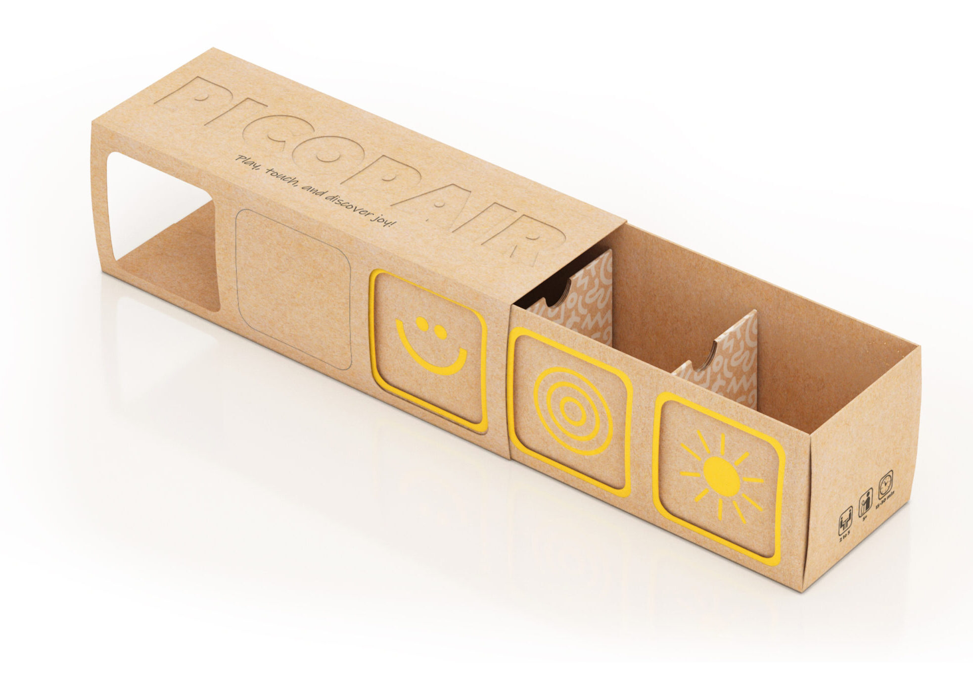 Designed to be felt, not just seen. Eco-friendly cardboard packaging designed to reflect the tactile and inclusive spirit of the game. A minimal sliding sleeve structure rendered with realistic kraft materials to capture warmth and simplicity. The Sliding Box Closed Box View
