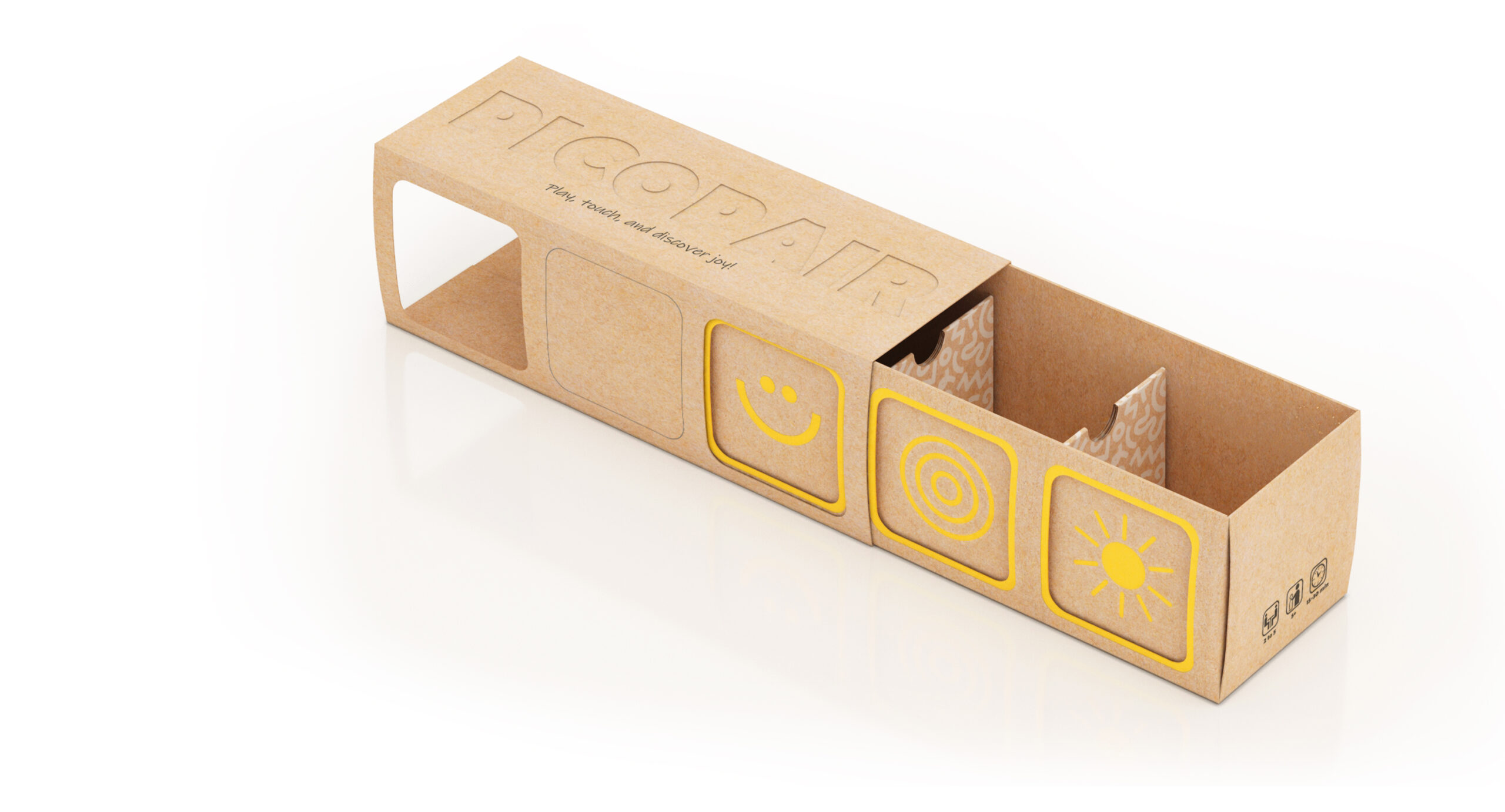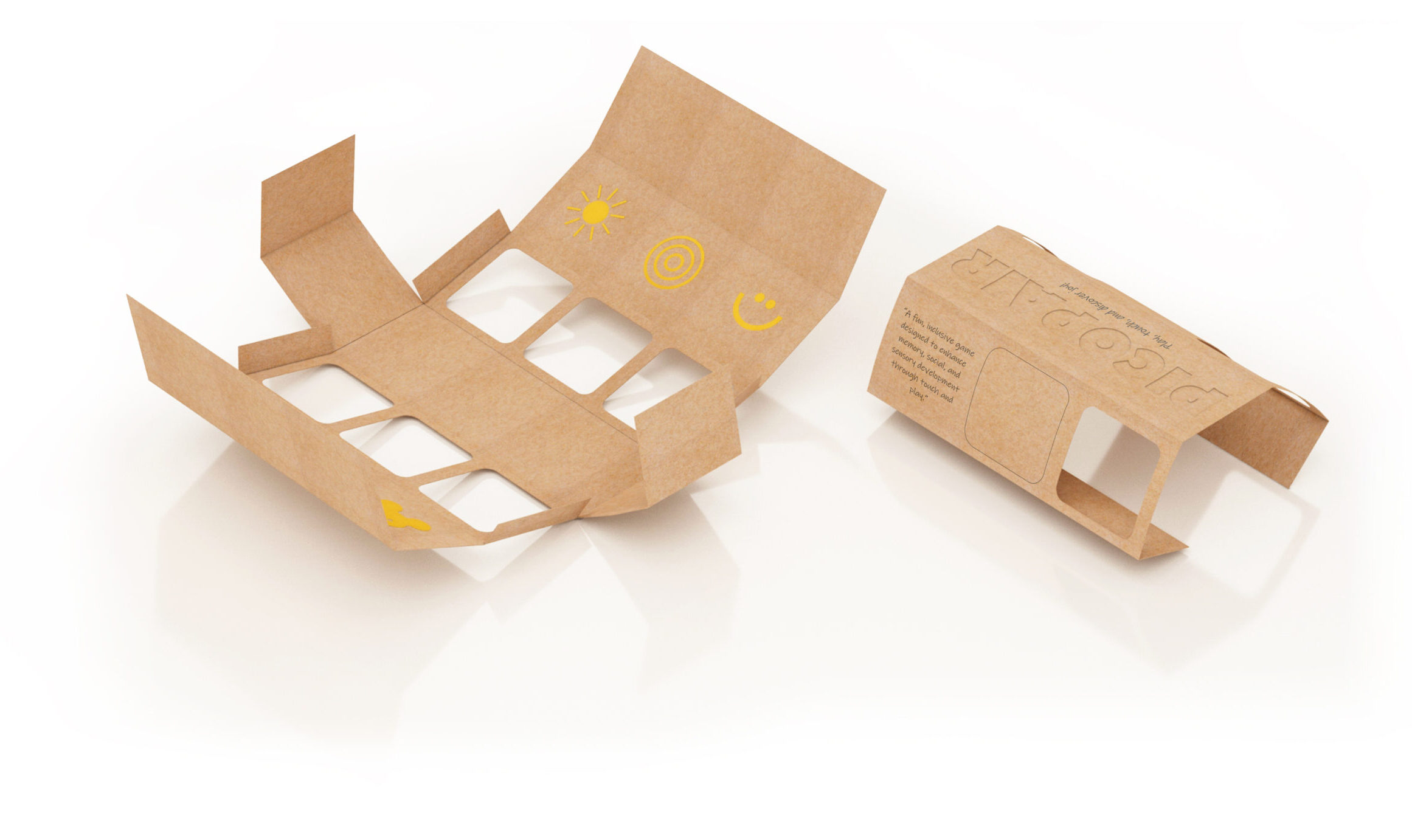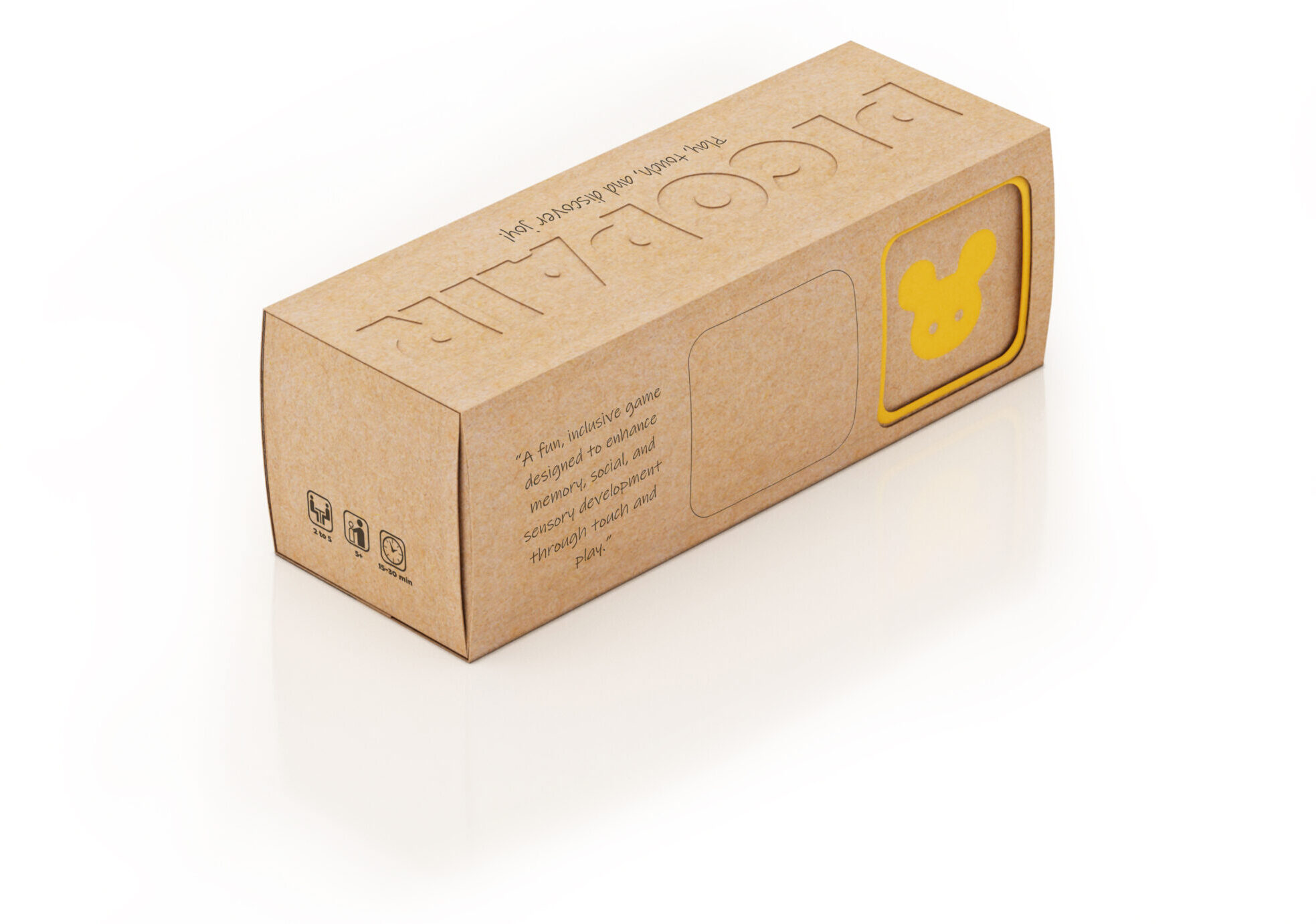 Designed to be felt, not just seen. Eco-friendly cardboard packaging designed to reflect the tactile and inclusive spirit of the game. A minimal sliding sleeve structure rendered with realistic kraft materials to capture warmth and simplicity. The Sliding Box Closed Box View Flat Layout